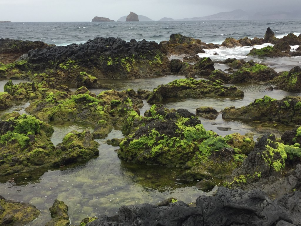 Sunrise by the rock poolsLevada TrailCaldeiraSunrise behind PicoTraditional whaling boats setting sale for a regattaCapelinhos Volcano from afarVibrant green algaeCapelinhos from above