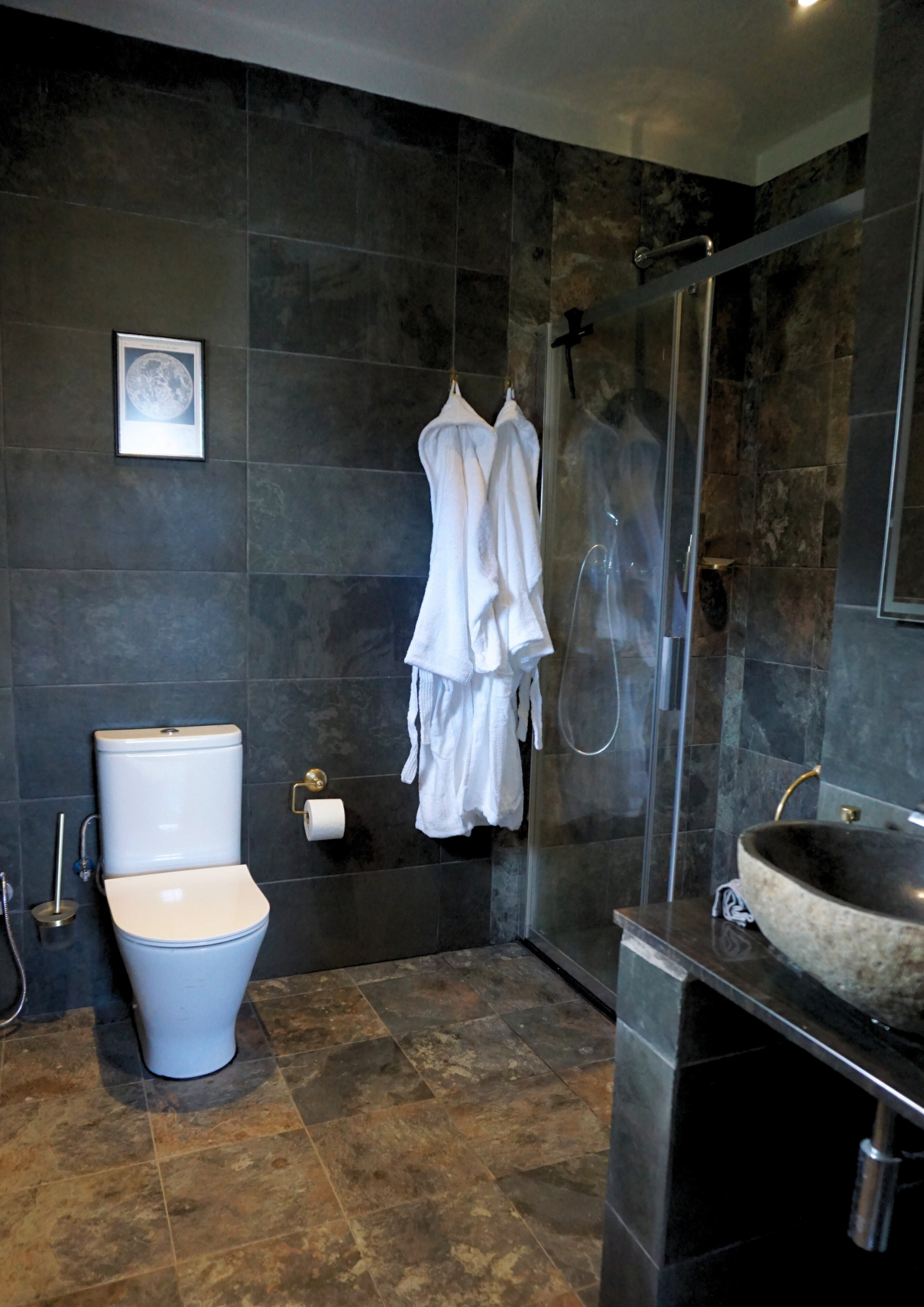 Downstairs there are two bedrooms with king size beds (EU) and private bathrooms. These bedrooms also have their own outside space.
